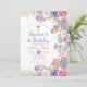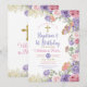Baptême Twin & 1er anniversaire Purple and Pink Floral Gold Cross Christening Invitation