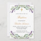 Invitation Baptême lavande violet fleurs eucalyptus vert