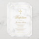 Invitation Baptême Marbre blanc Gold Cross Script Garçon