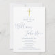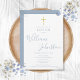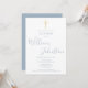 Invitation Baptême moderne Christening Gold Cross Dusty Blue