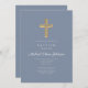 Invitation Baptême moderne Dusty Blue Religion Croix Boy Bapt