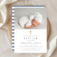 Personnalisé Moderne Dusty Blue Stripes Cross Photo Boy Baptism Invitation.