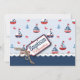 Carte nautique d'invitation de baptême de thème avec des voiliers, des crabes, et des ancres avec un arc et une étiquette de la ficelle 3D-look.