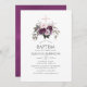 Violet, pêche et prune boho floral peint à la main à l'aquarelle baptême, baptême ou invitation à baptiser, conçu pour être rapidement et facilement customisé à votre événement spécifique.
