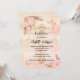 Un arrière - plan doré rose, rose rousse, dégradé rustique . Décoré de fleurs roses d'or et de rose, de roses, d'herbe de pampas, de papillons et d'une croix dorée. Une grande croix dorée au fond comme filigrane. Personnalisez et ajoutez un nom et les détails.