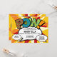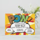 Une invitation de baptême, de parrainage sur le thème d'une bande dessinée ludique, cool et tendance, au genre neutre, qui met le boum, le zap, le pow dans l'événement de célébration de votre super-héros. Le verso présente un motif à pois de bande dessinée assorti et une bulle de dialogue pour les détails supplémentaires de l'événement et l'adresse. Conçu par Thisisnotme©
