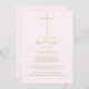 Arrière - plan rose avec une invitation photo en cadre doré. Baptême ou Christening invitation personnalisée. Le design est rose avec du texte qui est facilement changé à vos informations. Changez la photo avec votre propre image personnelle. Choisissez parmi une gamme de types de papier. D'une gamme de produits fixes de la gamme Fine Designs de Chessie.