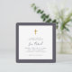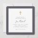 Une invitation simple et classique au baptême comprend une simple croix couleur or et un script de lettrage à la main moderne avec un angle arrondi de la bordure bleue minuit. Le dos de cette élégante invitation au baptême comporte une photo complète du bébé garçon ou de la fille à baptiser. Cette belle invitation est également parfaite pour un baptême adulte. Cette invitation religieuse traditionnelle est parfaite pour un sacrement catholique du baptême, du baptême chrétien ou du baptême.