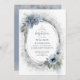 Cartes d'invitation de baptême à couronne de bleu poussiéreux et paillettes d'argent
