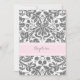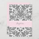 Baptême classique et élégant damassé invitation pour fille en gris fusain foncé et rose clair.