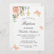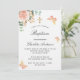 Un arrière - plan blanc décoré de verdure d'eucalyptus, d'or rose et de rose rose rousse, de feuilles dorés et de papillons. Personnalisez et le nom des enfants et les détails de la cérémonie.