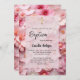 Invitation Baptême rose rousse fleurs bébé fille luxe
