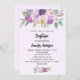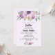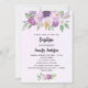 Arrière - plan violet, lavande aquarellé. Décoré de fleurs violettes et violettes aquarelles et verdure et d'une croix dorée. Personnalisez et ajoutez un nom et des détails de réception.