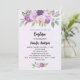 Invitation Baptême violet fleurs verdure croisent luxe