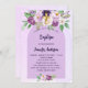 Arrière - plan violet, lavande aquarellé. Décoré de fleurs violettes et violettes aquarelles et d'une croix dorée. Personnalisez et le nom et les détails de la réception.