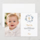 Invitation Baptism blue florals photo thank you card