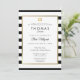 Avec un fond rayé noir et blanc classique, cette élégante invitation Bar ou Bat Mitzvah présente une bordure élégante en faux or qui encadre vos détails dans une typographie chic. Conçu par Thisisnotme©