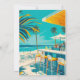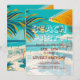 Préparez-vous à célébrer l'été avec style grâce à notre invitation de fête de plage estivale, qui présente une scène de plage vibrante et une écriture élégante pour donner le ton parfait à votre événement. Cette invitation capture l'essence d'une fête de plage animée, avec un bar de plage pittoresque, des palmiers qui se balancent et des vagues douces qui viennent lécher le rivage.