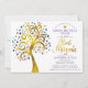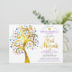 Soyez fiers, réjouissez-vous et mettez en valeur ce jalon de votre Bat Mitzvah préférée ! Cet arbre graphique en faux or avec des étoiles de David scintillantes turquoise, sarcelle, violettes et bleues et des "feuilles" en points sur fond blanc est l'invitation parfaite pour cette occasion spéciale. Un motif d'étoile de David minuscule et violet foncé se superposant sur un violet plus clair est sur le dos. Personnalisez le texte personnalisé avec le nom de votre Bat Mitzvah, son nom hébreu, la date et les informations sur le lieu. Garantie d'ajouter un plaisir stylé à son occasion spéciale !