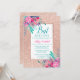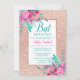 Invitation Bar Mitzvah florale aquarelle pailletée or rose