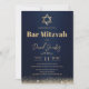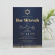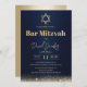 Cartes d'invitation Bar Mitzvah juif moderne bleu marine et or étoile de David.