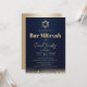 Cartes d'invitation Bar Mitzvah étoile de David bleu marine moderne et or juives.