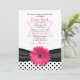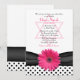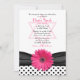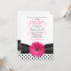 Invitation de Bat Mitzvah à pois noirs et blancs élégants et féminins, avec ruban et gerbera rose et étoile de David juive.