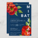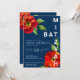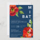 Invitation Bar Mitzvah Navy Bold Rouge Floral Aquarelle Moder