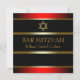 Belle invitation de Bar Mitzvah rouge et noir avec étoile de David dorée.