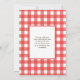 Faites démarrer votre fête d'été de façon amusante avec ces jolies invitations. Conçues pour ressembler à une vue latérale d'un hamburger, les différentes couches du burger et les condiments sont en réalité des lignes de texte qui indiquent les détails de la fête. Le design comporte les mots "Veuillez nous rejoindre pour un BBQ" et les lignes de texte restantes sont personnalisables par vos soins. Il suffit de remplir vos informations de fête et d'ajuster la taille du texte, si nécessaire, à partir de l'outil de conception auquel on accède en cliquant sur "Personnaliser davantage". Le verso est imprimé avec un motif à carreaux rouge pour un pique-nique et comporte un bloc ouvert au centre où vous pouvez ajouter plus de détails sur la fête. Si aucun autre texte n'est nécessaire, il suffit de supprimer le texte d'exemple et la zone de texte !