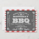 Un barbecue d'anniversaire (bar b que) vintage et rétro à l'aspect modèle de tableau noir avec des motifs ornementaux et des fleurs.