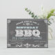 Un barbecue d'anniversaire (bar b que) vintage et rétro à l'aspect modèle de tableau noir avec des motifs ornementaux et des fleurs.