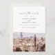Cette sauvegarde de la date présente une aquarelle de la ligne d'horizon de Barcelone, Espagne. Modifiez facilement le libellé *most* pour répondre à vos besoins et ajoutez votre photo ou vos photos à l'arrière avec votre site Web mariage.