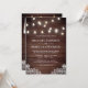 Éblouissez vos invités avec cette élégante invitation de mariage tout en un avec de belles ampoules à cordes et dentelle blanche avec QR Code pour RSVP en ligne sur un arrière - plan rustique en bois de grange. Ajoutez simplement les détails de votre événement sur ce modèle facile à utiliser et décorez cette carte avec vos photos préférées pour en faire une invitation personnalisée unique.