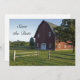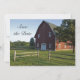 Installez un ton décontracté pour votre cérémonie de mariage avec la charmante grange rouge et le Mariage campagnard de clôture Enregistrer la date annonce. Ce mariage de ranch personnalisé, décontracté mais élégant, conserve le faire-part datant et présente une photo de ferme pittoresque d'une grange rouge rustique et d'une clôture en bois au lever du soleil. Idéal pour un événement informel de réception de grange fêtes.