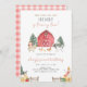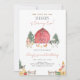 Barnyard Animaux Noël Anniversaire de enfant Party Invitation, Red Barn X'Mas B'day Invitation