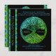 Customisez cette invitation Bar Mitzvah bleue et verte avec un arbre de vie. Conception par Amelia Carrie