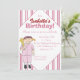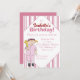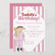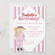 Une petite fille dans un uniforme et une casquette de baseball roses de base-ball se tient avec la batte et la boule à disposition sur un fond rayé à cette invitation de fête d'anniversaire. Tout le texte peut facilement être customisé pour adapter à vos propres besoins. De mon image numériquement-créée originale.
