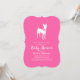 Inclure le grand frère ou la soeur en fourrure bébé dans la célébration avec cet adorable baby shower Basenji design! Parfait pour un amoureux du chiot avec un bébé en route. Le Basenji se trouve à côté d'un adorable chariot vintage. Le rose en fait un endroit parfait pour une petite fille en route !
