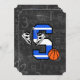 Design amusant de basketball pour le jeune joueur de basketball ou fan de basketball. Présente la lettre S dans les couleurs de l'équipe bleue et blanche avec des baskets et un ballon de basketball. Le fond présente un design de tableau noir avec des termes et des images de basketball