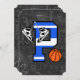 Design amusant de basket-ball pour le jeune joueur de basket-ball ou fan de basket-ball. Présente la lettre P dans les couleurs de l'équipe bleue et blanche avec des baskets et un ballon de basket. Le fond présente un design de tableau noir avec des termes et des images de basket-ball