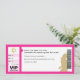 Chaque grande Bat Mitzvah commence par un peu d'effervescence. Créez la vôtre avec cette carte de sauvegarde de la date et assurez-vous que vos amis et votre famille seront au premier rang. Cette invitation est conçue comme un billet de concert. L'allée, la rangée et le siège correspondent à la date de l'événement pour un supplément de style. Une étoile de David est ancrée en haut à gauche et l'accès VIP est estampé en bas. La silhouette d'une fille tenant un microphone et rejetant ses cheveux énergise le morceau et un code-barres traditionnel complète le look. Le dos du billet met en évidence le "logo de la tournée" et l'initiale de votre fille est au centre. Vous pouvez personnaliser toutes les informations imprimées avec le nom de votre fille et la date de l'événement… il suffit de remplir les champs !