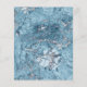 Cette élégante invitation bat mitzvah présente un design de bordure bleu clair en aquarelle, imitation de marbre veiné avec un faux papier argenté, s'estompant graduellement dans l'arrière - plan blanc. Les mots "bat mitzvah" apparaissent dans le script d'écriture manuscrite gris charbon, le reste du texte dans les chapiteaux serif. La motif en marbre bleu et argent est répétée au dos de la carte.
