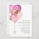 Invitation bat mitzvah tendance avec parties scintillant rose et or et ballons de confetti avec une parties scintillant rose inverse géométrique.