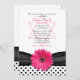 Invitation de Bat Mitzvah classe et féminine à pois noirs et blancs, ruban et gerbera rose avec étoile de David juive.