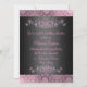 Cette Elégante invitation d'anniversaire Bat mitzvah personnalisable présente un motif de flocons de neige tourbillonnante rose sur un arrière - plan de shimmer noir damassé. Customisez-le en ajoutant vos détails dans la police de votre choix !