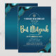 Soyez fiers, réjouissez-vous et mettez en valeur ce jalon de votre Bat Mitzvah préférée ! Envoyez cette invitation cool, unique, moderne et personnalisée avec le nom hébreu pour un événement inoubliable. Une typographie de script à feuille d'or fausse, une typographie sans empattement blanche et une étoile de David faussement dorée se superposent sur un fond ombré turquoise sarcelle profond accentué d'agate bleue turquoise avec des veines en feuille d'or fausse. Personnalisez le texte personnalisé avec le nom de votre Bat Mitzvah, son nom hébreu, la date et les informations sur le lieu. Garantie d'ajouter un plaisir élégant à son occasion spéciale !