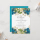 Turquoise - turquoise et or shabby-chic fleurs bat mitzvah invitation avec accents d'ivoire blanc et élégante typographie d'écriture.