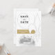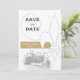 Assurez-vous que vos amis et les personnes qui vous sont chères soient présents le jour de votre mariage spécial à la Nouvelle-Orléans avec ces originaux cartons "Save the Date" Fleur de Lis de bateau à vapeur de la Nouvelle-Orléans. Les cartes comportent "Save the Date" sur le devant avec un dessin original comprenant un croquis de bateau à vapeur et un symbole de Fleur de Lis, avec de la place pour ajouter vos noms et date de mariage. Le verso présente un dessin de symbole de Fleur de Lis. Remplissez vos informations de mariage et préparez-vous à laisser les bons moments s'écouler ! Illustré ici dans une palette de couleurs or, noir et blanc. Visitez www.zazzle.com/enchantedbayou* pour des cartes, invitations et cadeaux sur le thème cajun et de la Nouvelle-Orléans.