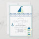Cette invitation au baptême mignonne et moderne présente un phare bleu bleu turquoise clair et bleu marine, voilier, ancre avec vagues bleues sur un arrière - plan blanc encadré par une bordure bleu turquoise clair. À l'envers, on retrouve un arrière - plan bleu marine avec des motifs de corde bleu marine. Personnalisez-vous pour répondre à vos besoins. Vous pouvez trouver d'autres produits correspondants dans mon magasin.